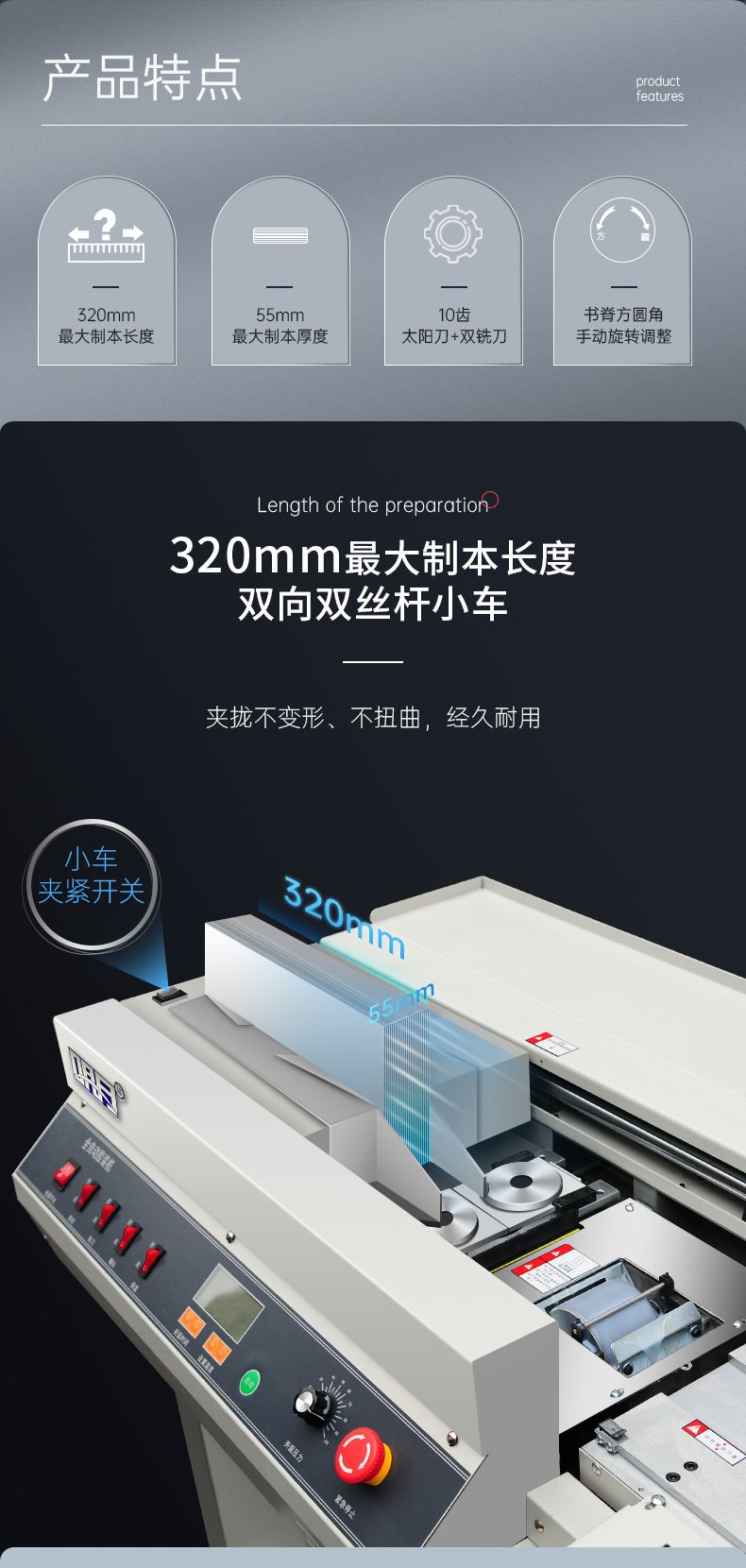 2.膠裝長度320mm,膠裝厚度550頁普通復印紙。
